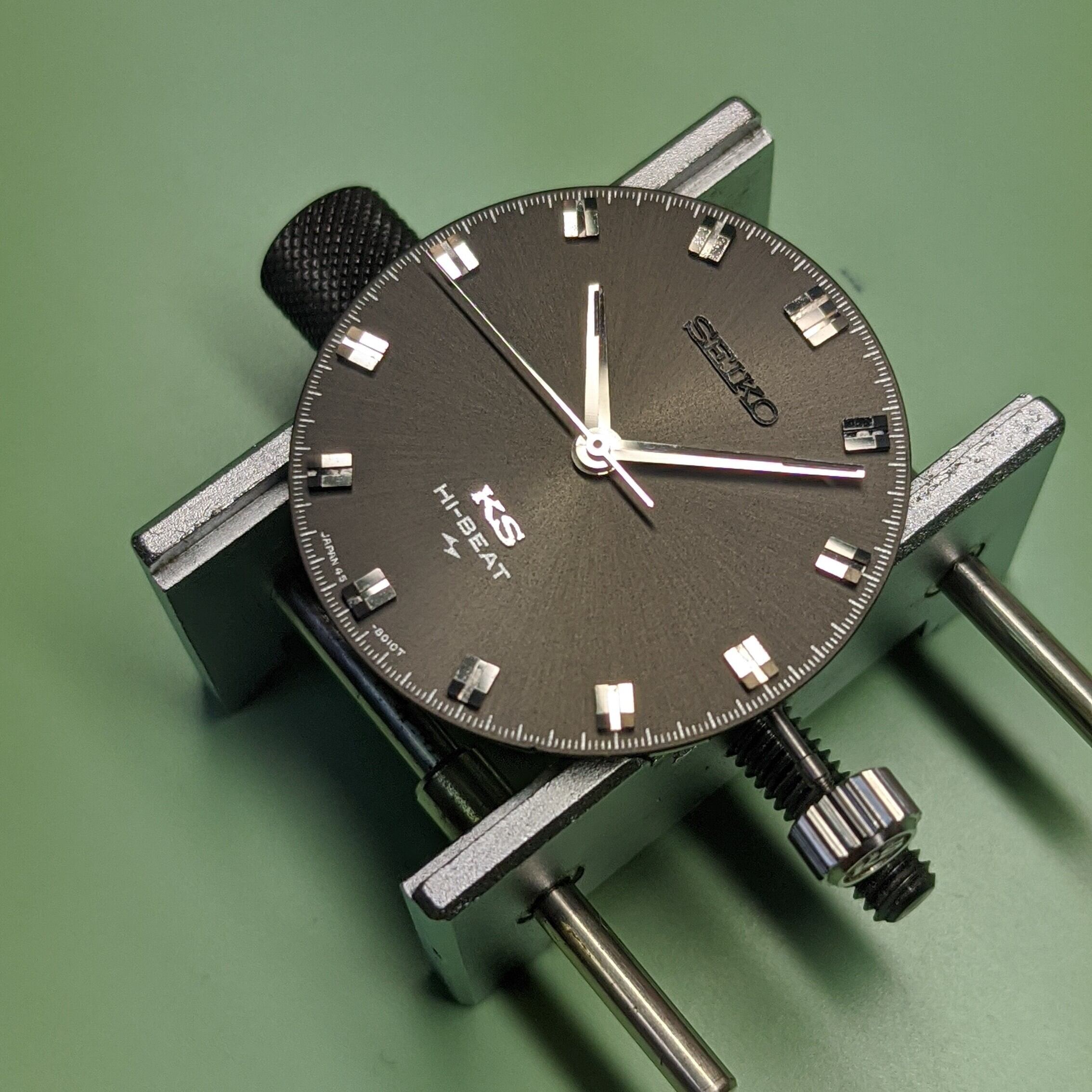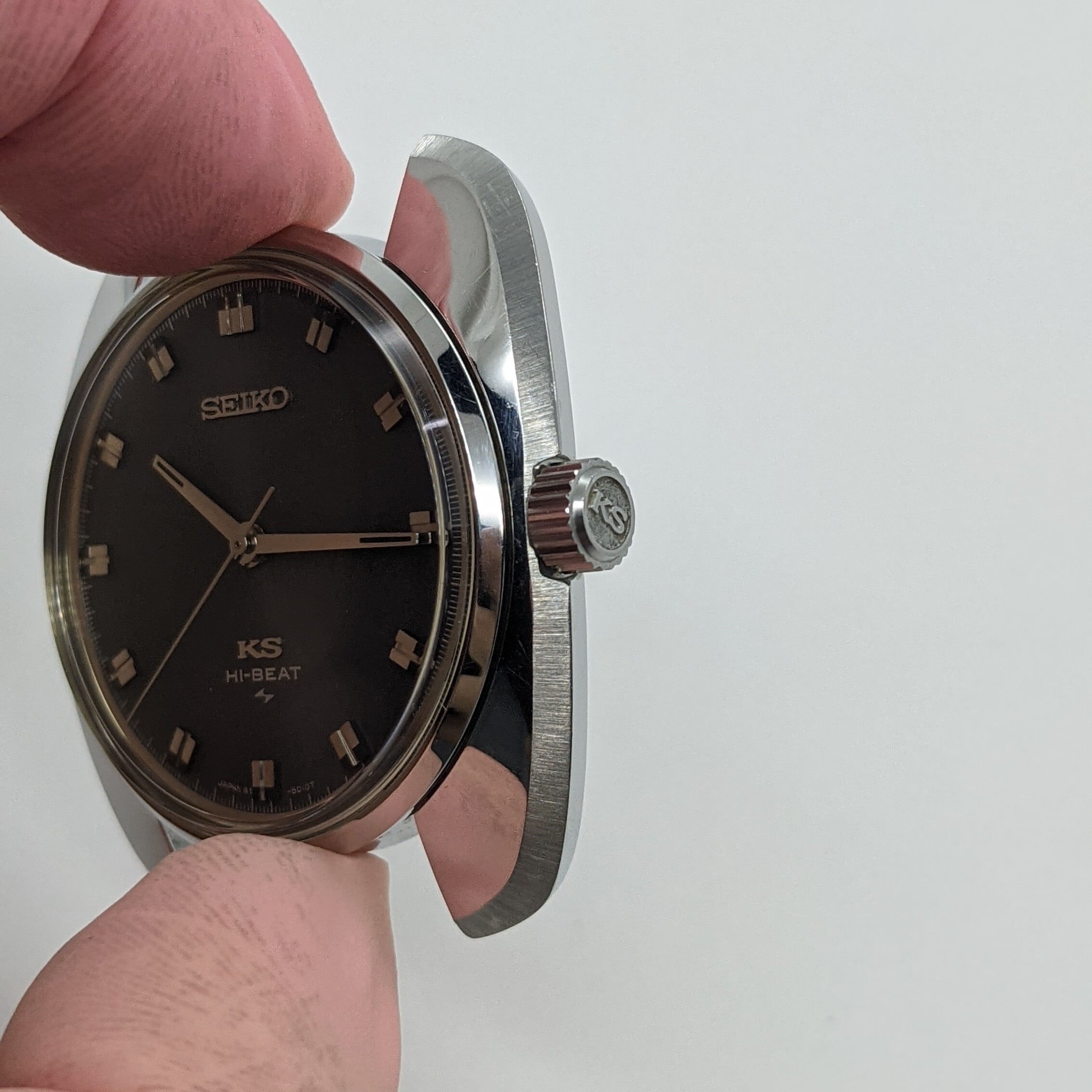 45KSはキングセイコーの中のでも非常に精度が高いモデルです。しかし近年では不動品やゼンマイの入っている香箱やそのとなりの部品のカナに問題があるものが多く出回っており状態の良い45モデルは少なくなっています。