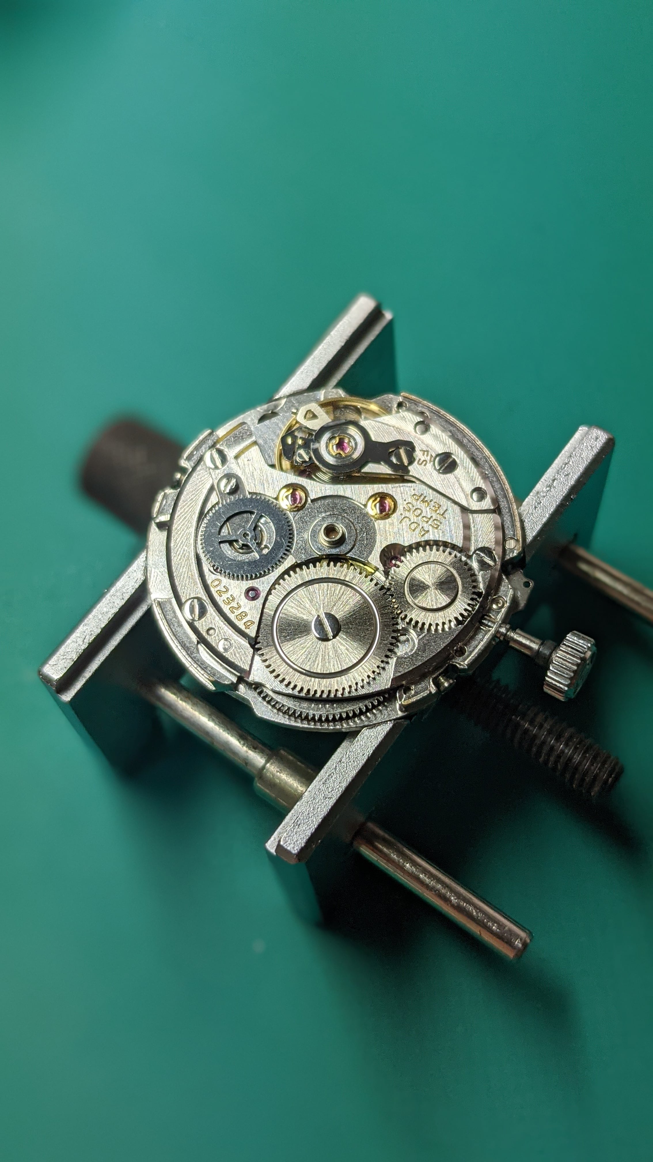 56GSの弱点の日付早送り車のパーツの一部を金属製に替えて強化してあります。